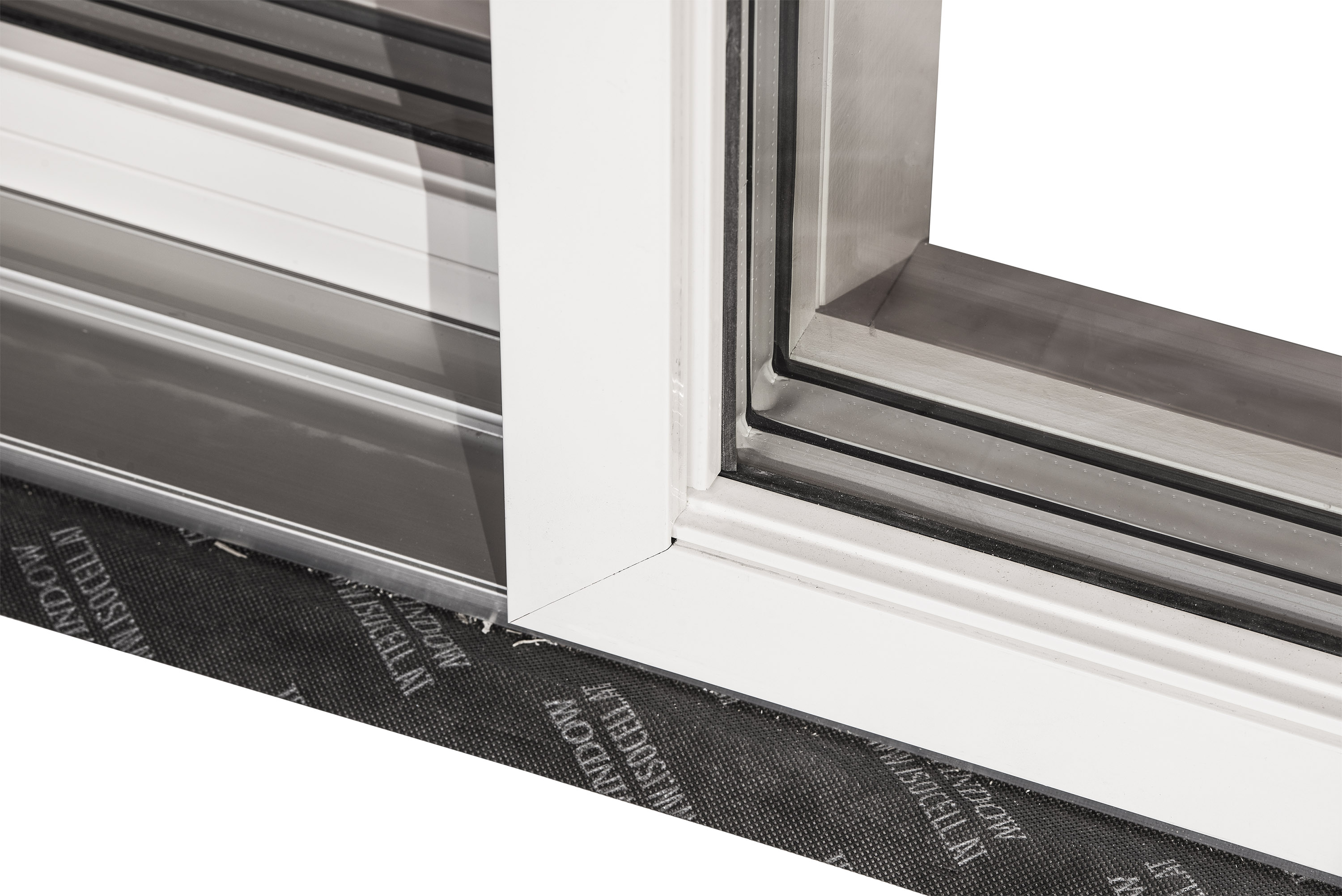 Giljes skyvedør leveres med ferdig montert vindtetting mellom terskel og svill for enklere montering.