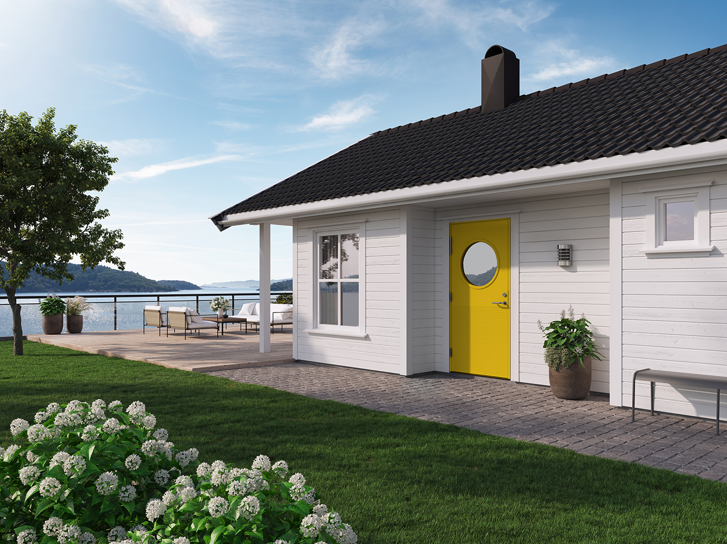 Giljes ytterdører er produsert for å tåle et skiftende norsk klima, og ikke minst hard bruk. Kompaktlaminat er standard på alle våre ytterdører. Du kan velge en dør eller en komplett løsning av et inngangsparti med sidefelt og overlys. Velger du det siste leverer vi hele konstruksjonen sammensatt. Det gir et helhetlig og vakkert utseende. Våre dører kan leveres inntil 129 cm bredde for enkeltdører og 239 cm bredde for to-fløyede dører. Høyde kan leveres inntil 239 cm. Alle ytterdørene leveres standard utadslående. Basic serien kan også leveres med innadslående slagretning.