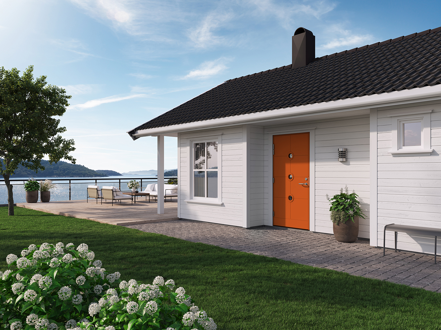 Giljes ytterdører er produsert for å tåle et skiftende norsk klima, og ikke minst hard bruk. Kompaktlaminat er standard på alle våre ytterdører. Du kan velge en dør eller en komplett løsning av et inngangsparti med sidefelt og overlys. Velger du det siste leverer vi hele konstruksjonen sammensatt. Det gir et helhetlig og vakkert utseende. Våre dører kan leveres inntil 129 cm bredde for enkeltdører og 239 cm bredde for to-fløyede dører. Høyde kan leveres inntil 239 cm. Alle ytterdørene leveres standard utadslående. Basic serien kan også leveres med innadslående slagretning.