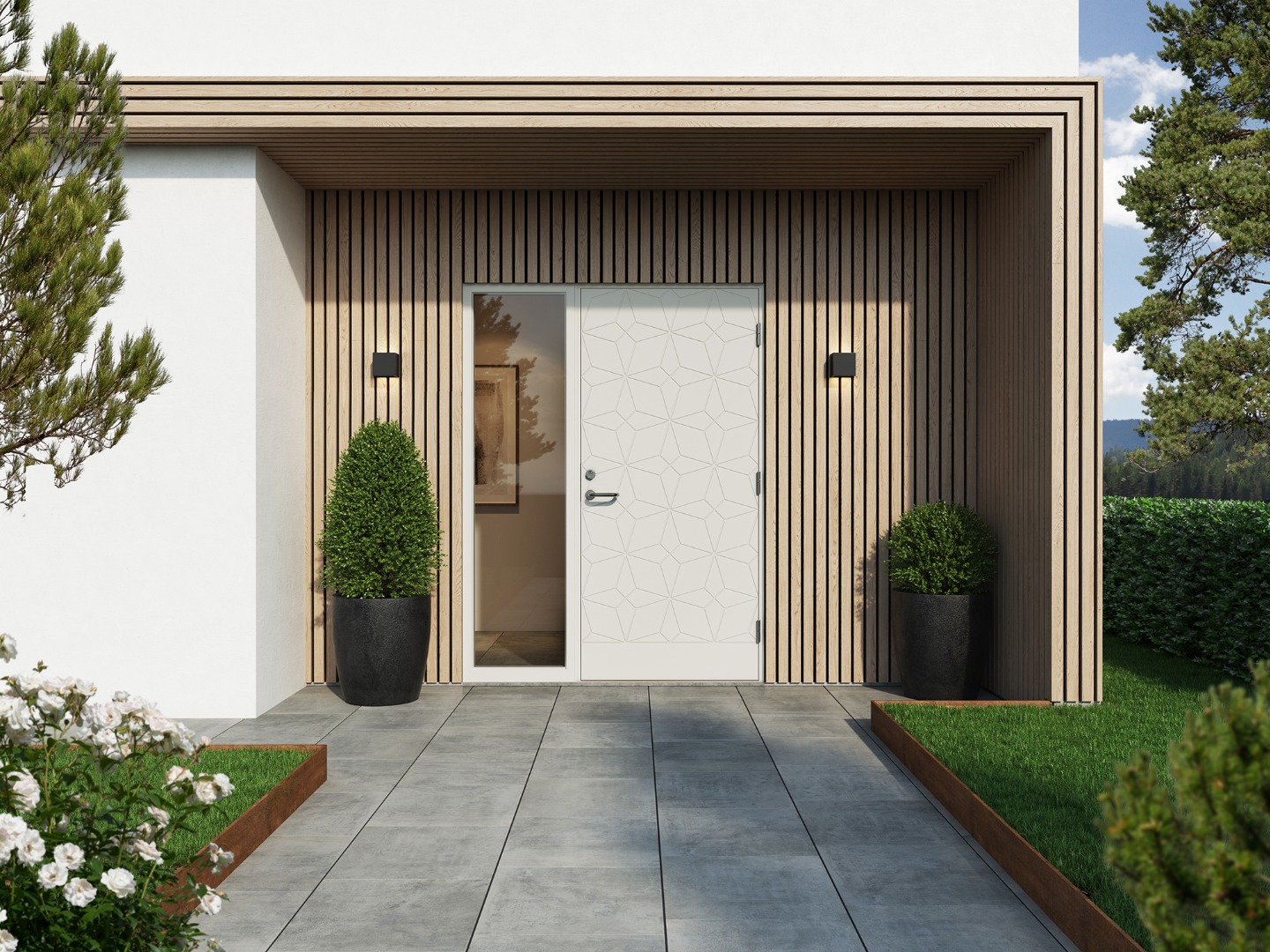 Giljes ytterdører er produsert for å tåle et skiftende norsk klima, og ikke minst hard bruk. Kompaktlaminat er standard på alle våre ytterdører. Du kan velge en dør eller en komplett løsning av et inngangsparti med sidefelt og overlys. Velger du det siste leverer vi hele konstruksjonen sammensatt. Det gir et helhetlig og vakkert utseende. Våre dører kan leveres inntil 129 cm bredde for enkeltdører og 239 cm bredde for to-fløyede dører. Høyde kan leveres inntil 239 cm. Alle ytterdørene leveres standard utadslående. Basic serien kan også leveres med innadslående slagretning.