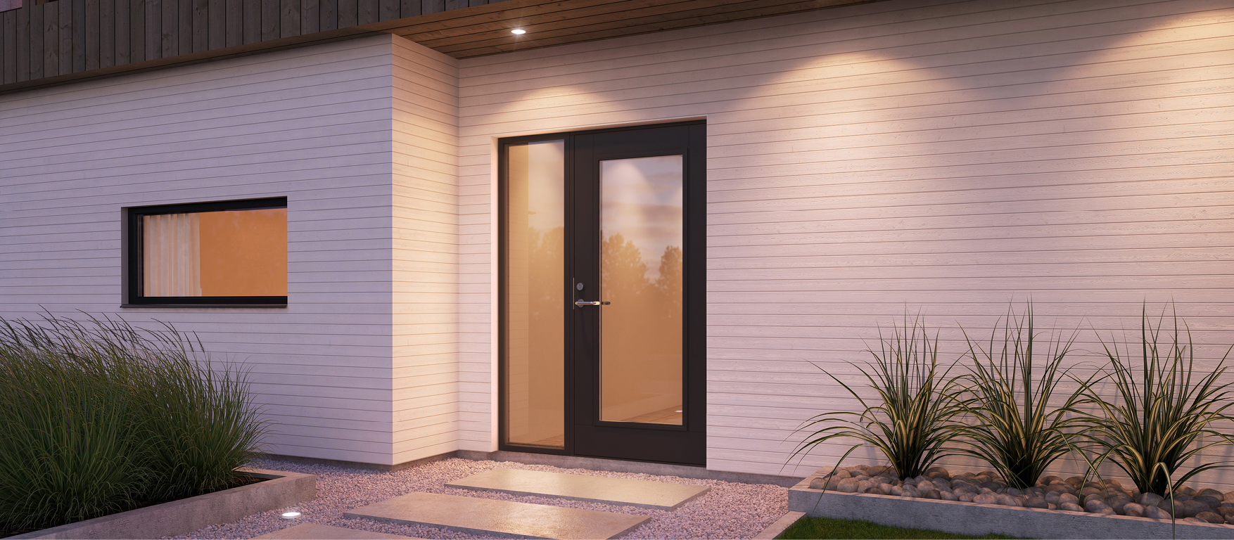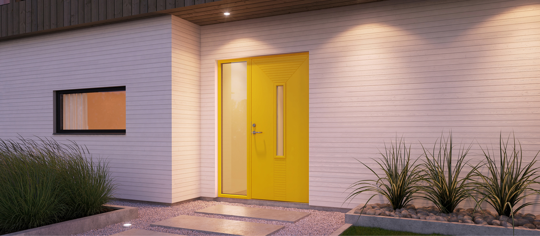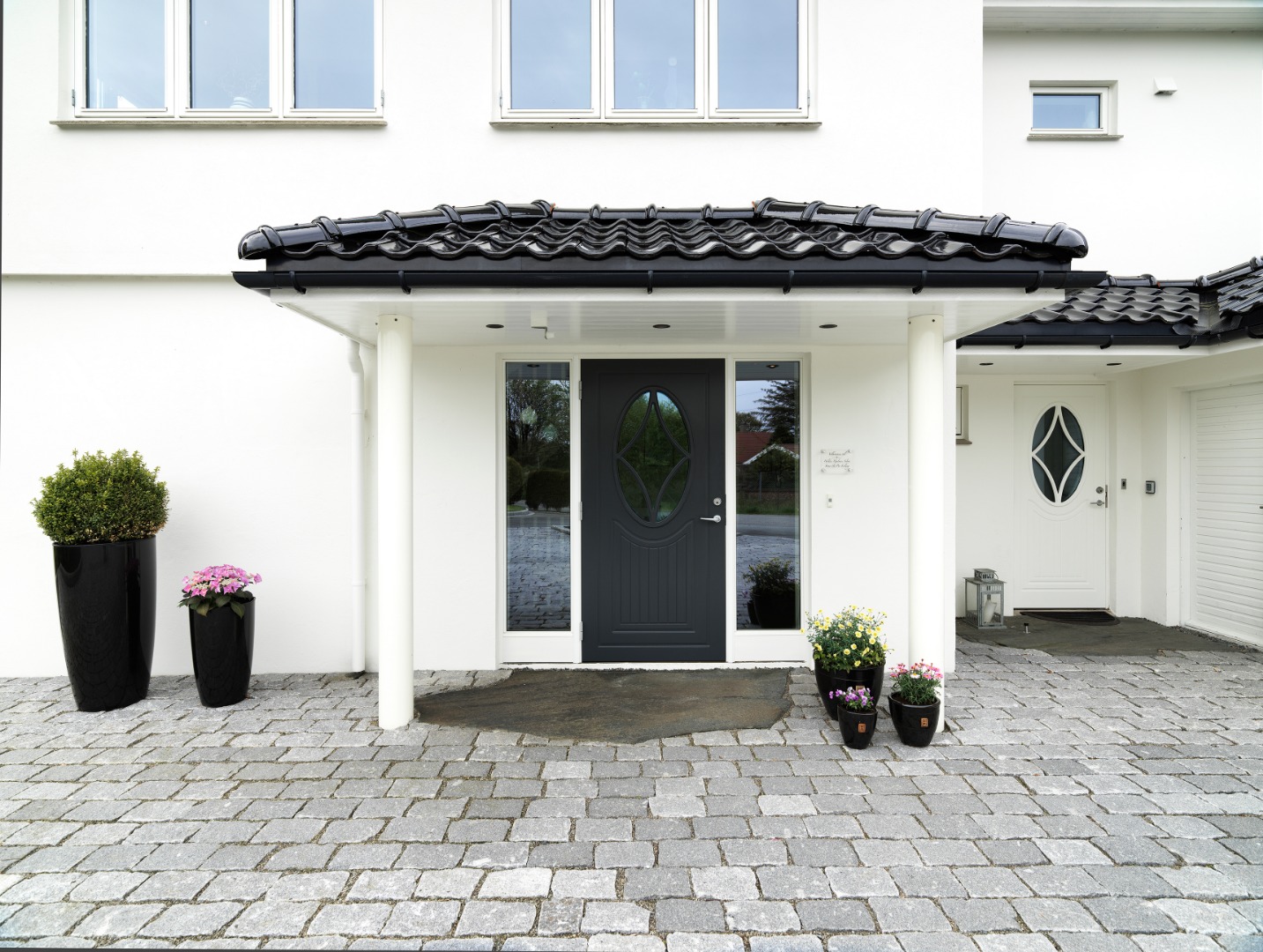 Giljes ytterdører er produsert for å tåle et skiftende norsk klima, og ikke minst hard bruk. Kompaktlaminat er standard på alle våre ytterdører. Du kan velge en dør eller en komplett løsning av et inngangsparti med sidefelt og overlys. Velger du det siste leverer vi hele konstruksjonen sammensatt. Det gir et helhetlig og vakkert utseende. Våre dører kan leveres inntil 129 cm bredde for enkeltdører og 239 cm bredde for to-fløyede dører. Høyde kan leveres inntil 239 cm. Alle ytterdørene leveres standard utadslående. Basic serien kan også leveres med innadslående slagretning.