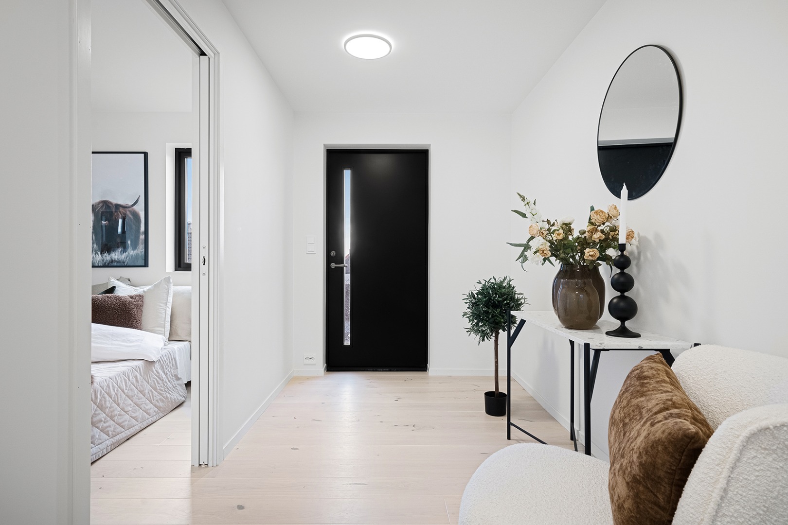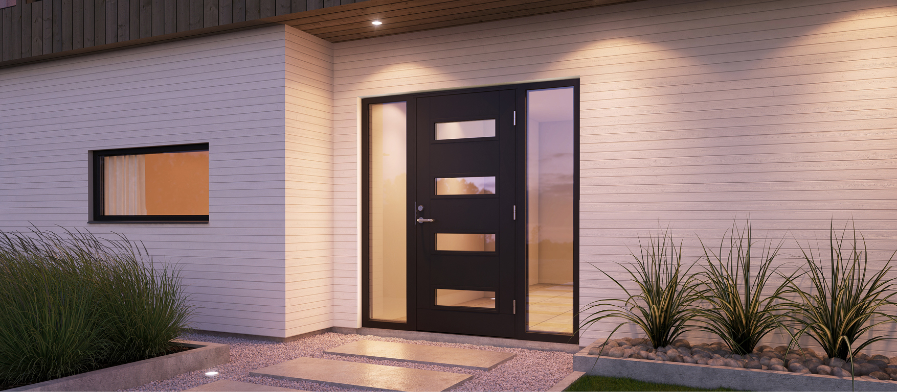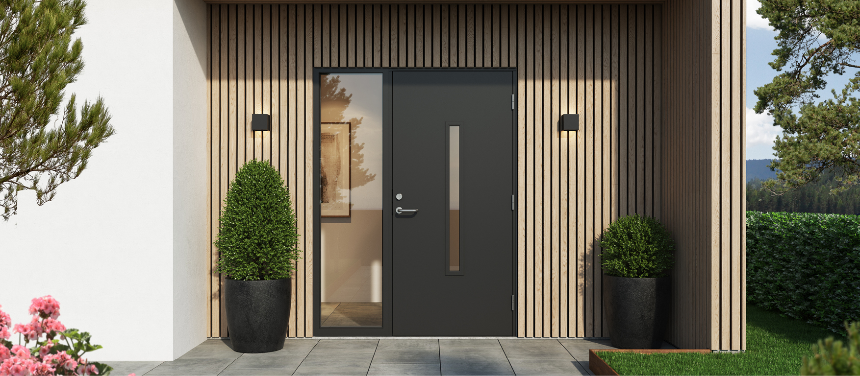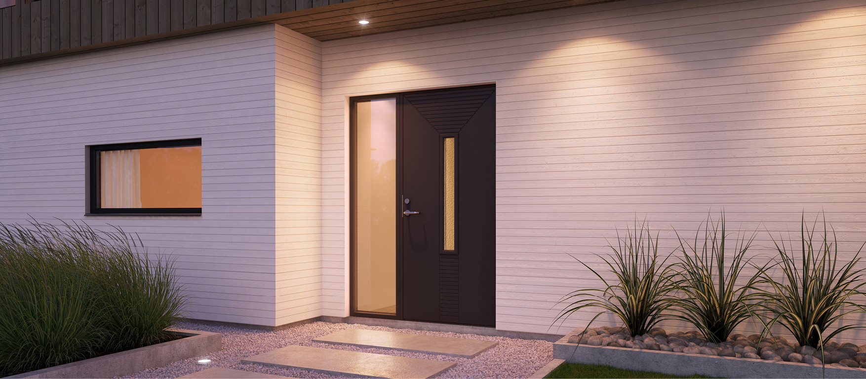 Giljes ytterdører er produsert for å tåle et skiftende norsk klima, og ikke minst hard bruk. Kompaktlaminat er standard på alle våre ytterdører. Du kan velge en dør eller en komplett løsning av et inngangsparti med sidefelt og overlys. Velger du det siste leverer vi hele konstruksjonen sammensatt. Det gir et helhetlig og vakkert utseende. Våre dører kan leveres inntil 129 cm bredde for enkeltdører og 239 cm bredde for to-fløyede dører. Høyde kan leveres inntil 239 cm. Alle ytterdørene leveres standard utadslående. Basic serien kan også leveres med innadslående slagretning.