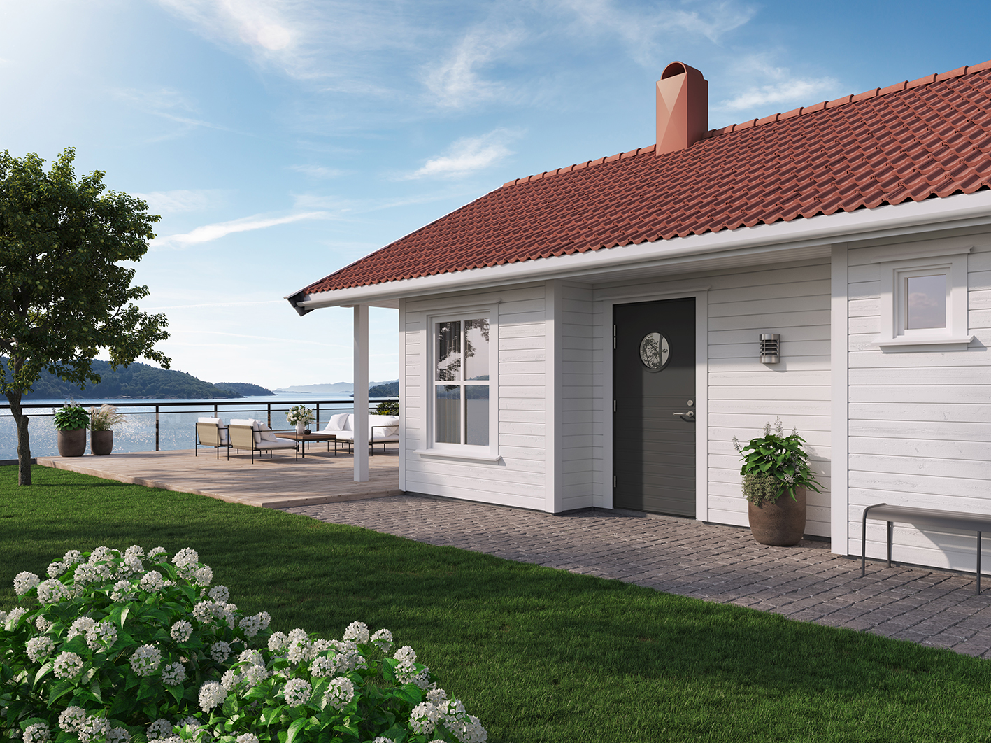 Giljes ytterdører er produsert for å tåle et skiftende norsk klima, og ikke minst hard bruk. Kompaktlaminat er standard på alle våre ytterdører. Du kan velge en dør eller en komplett løsning av et inngangsparti med sidefelt og overlys. Velger du det siste leverer vi hele konstruksjonen sammensatt. Det gir et helhetlig og vakkert utseende. Våre dører kan leveres inntil 129 cm bredde for enkeltdører og 239 cm bredde for to-fløyede dører. Høyde kan leveres inntil 239 cm. Alle ytterdørene leveres standard utadslående. Basic serien kan også leveres med innadslående slagretning.