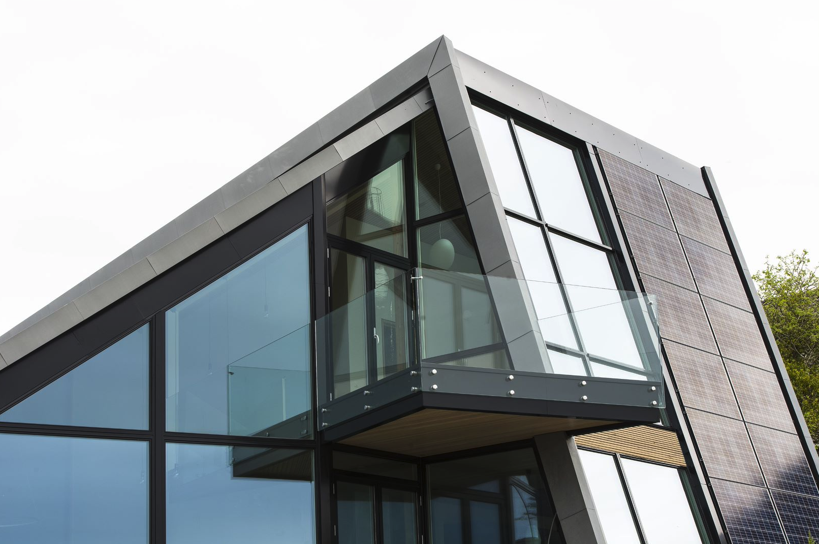 Arkitekten har lekt med glass og vinkler for å skape en spennende og åpen bolig.