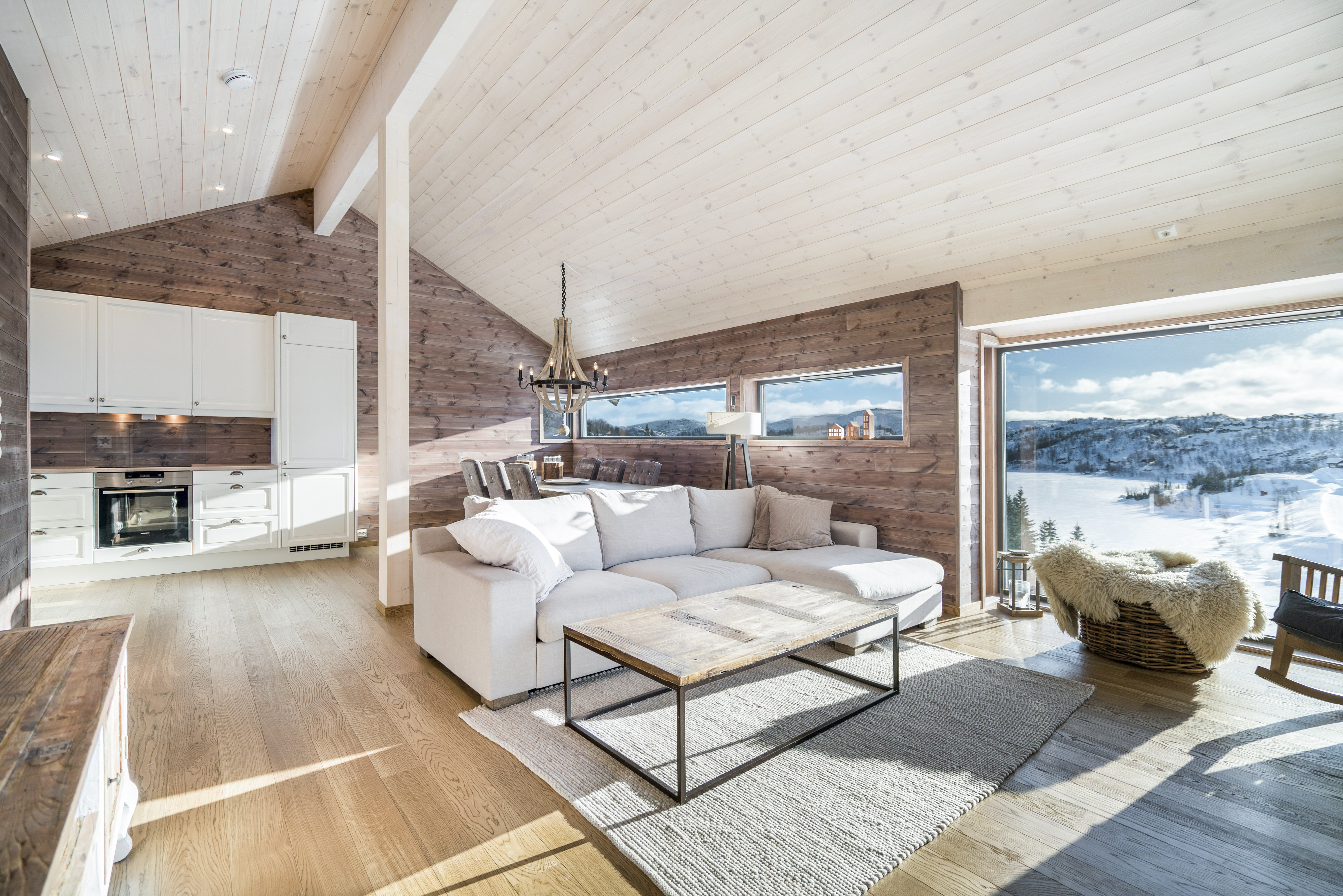 På fjellet i Sirdal er det viktig å få med seg naturen, også når man er inne. I denne hytta har eier valgt store vindusflater for å åpne opp for utsikten.