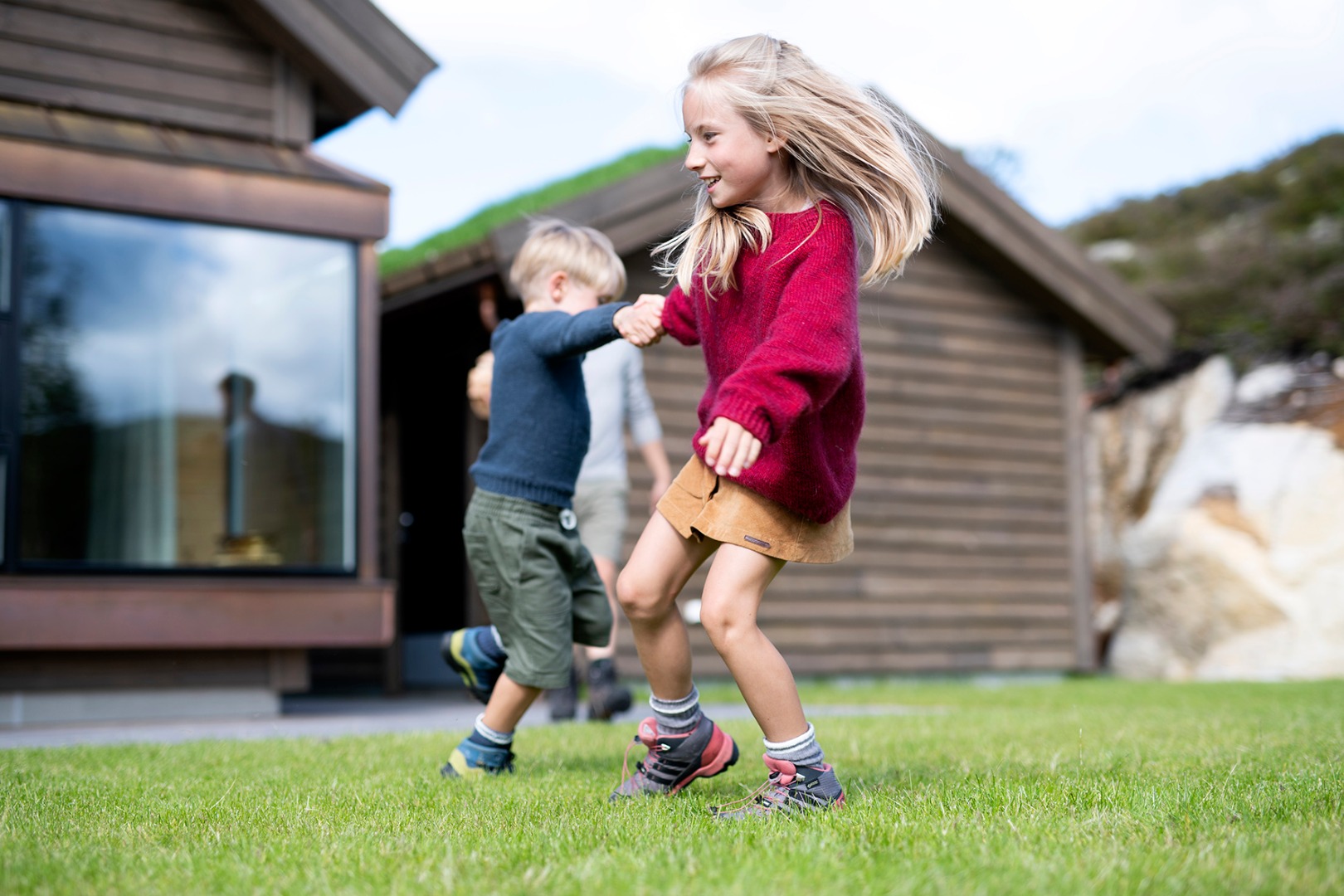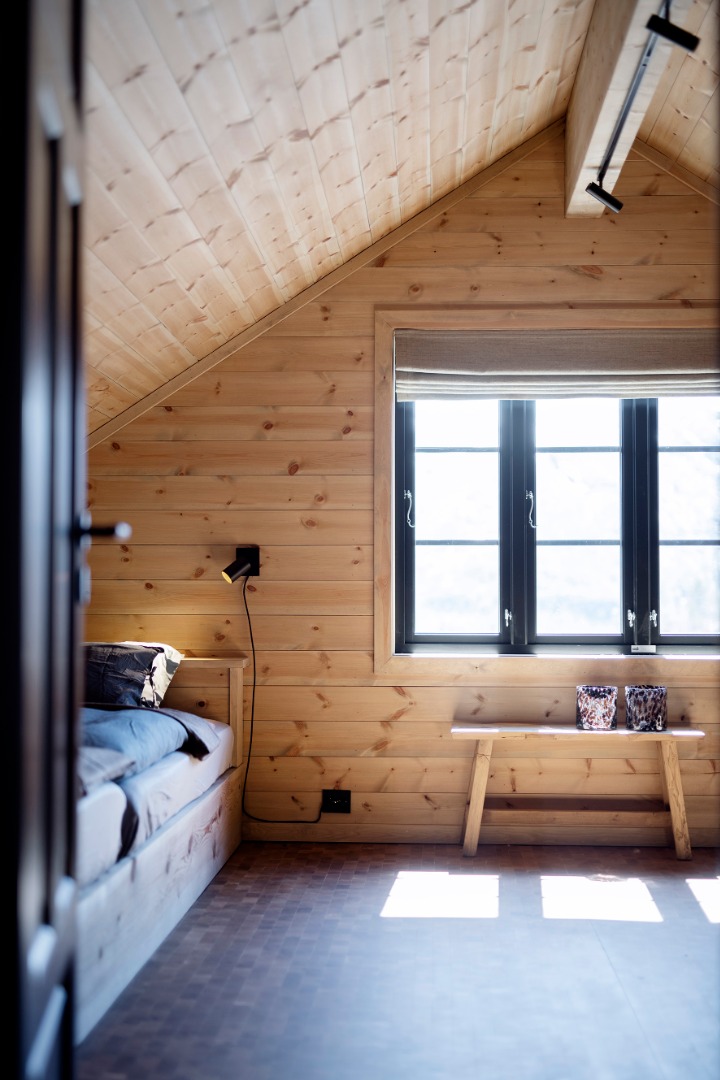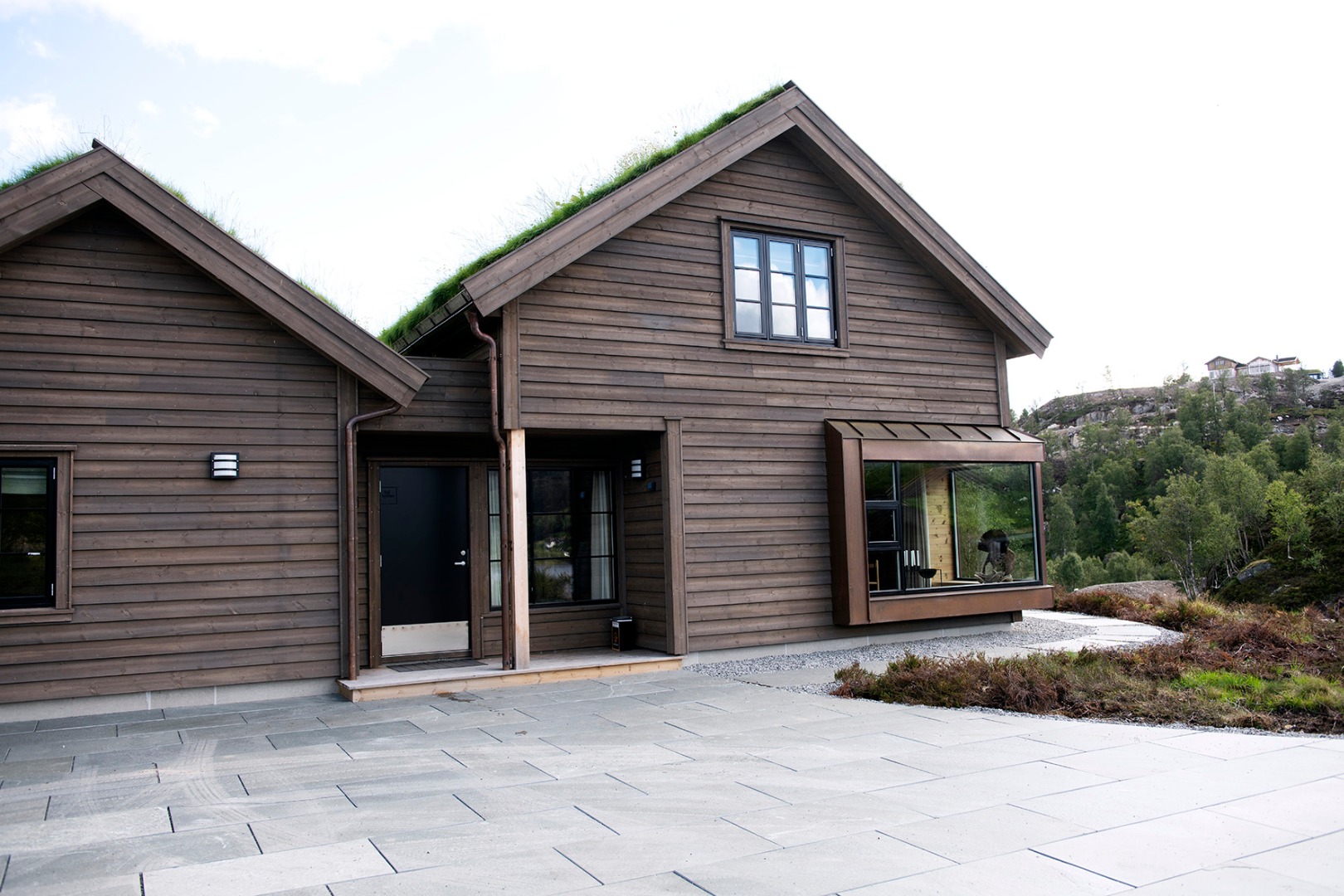Dette er en stor og romslig familiehytte. Her har vi levert sidehengslede vinduer og dører fra produktserien Gilje Basic. Vinduene har 25mm klipssprosse i aluminium utvendig. Klipssprossen er enkel å ta av og sette på igjen når du vasker vinduene. Vinduene er malt i sort NCS S 9000N.