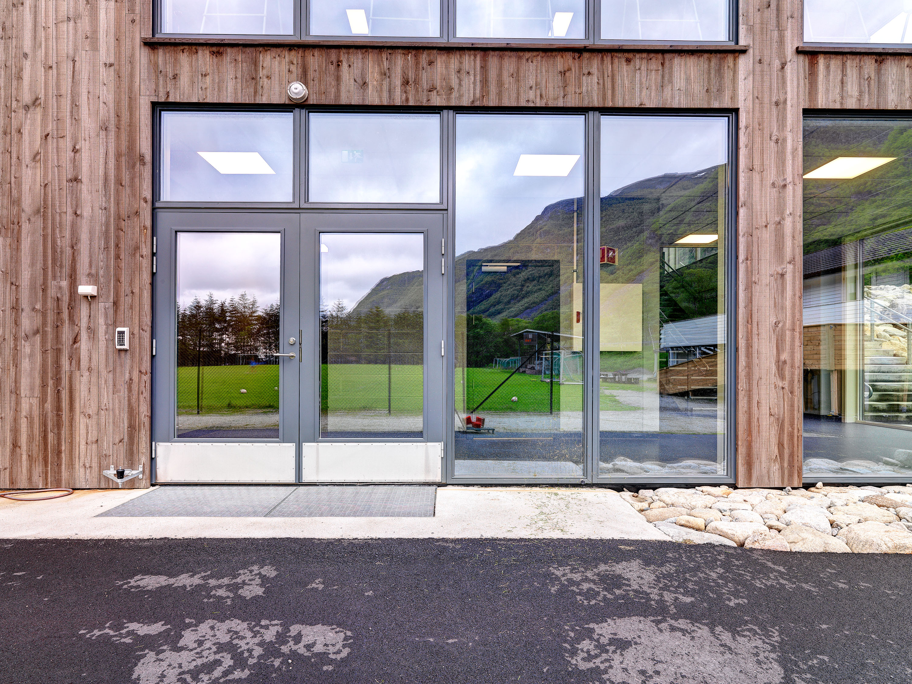 Dørene har vi levert både innvendig og utvendig tilpasset for de krav som er på bygget i henhold til brann og lyd. Ytterdørene er levert i høytrykkslaminat for å sikre at dørene holder seg like pene i årtier med hardt bruk