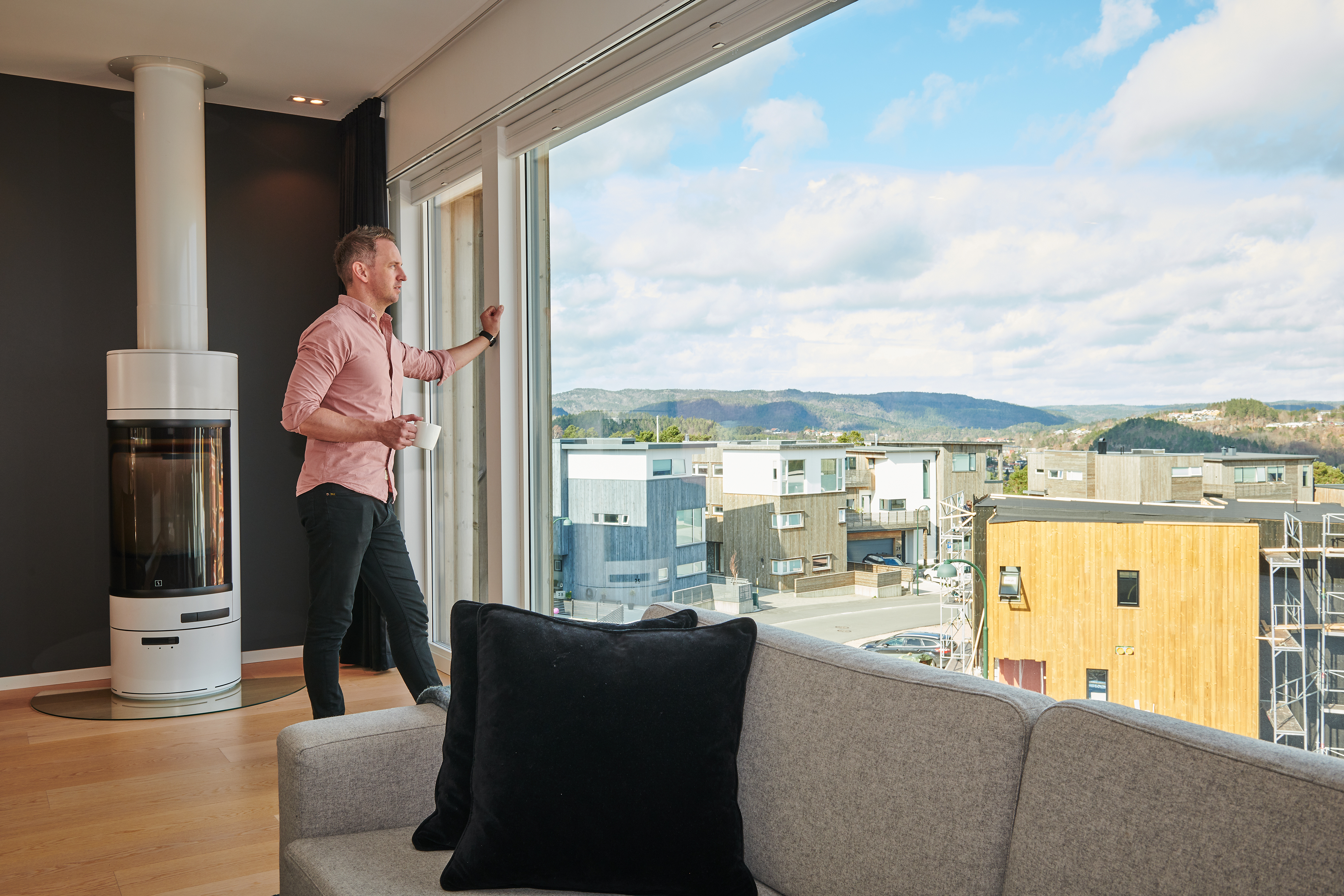– Vi valgte også Gilje fordi de har er et navn vi kjente fra før, og fordi vinduet de leverte kunne håndtere vær og vind. På Justnes panorama kan det blåse en del, og med et så stort vindu er det viktig at det er robust og tåler mye. Det har det absolutt gjort så langt. Det føles trygt, og dessuten er det veldig godt isolert. Det er en lun og fin varme i huset på vinterstid, supplerer Bjørnevik.