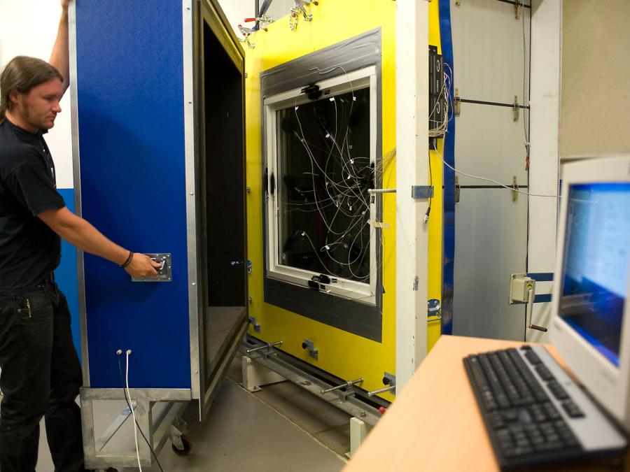 I vårt Hotbox testsenter måles vinduer og dørers U-verdier, og vi tester dem i forhold til luft- og regntetthet. Lufttetthet måles i henhold til standarden NS-EN 1026, og regntetthet etter NS-EN 1027. Gilje er alene i Norge om å teste U-verdi i produksjonslokalene.