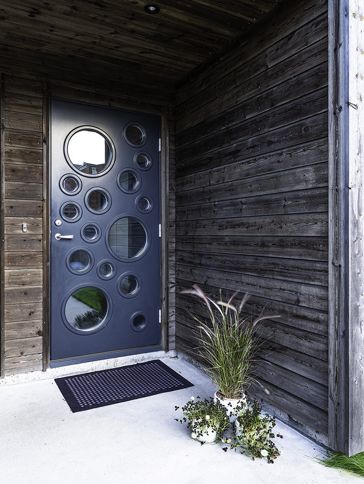 – Døra er det første som møter gjestene, og de blir ofte litt nysgjerrige. Mange snakker om den kule døra, og jeg blir spurt hvor har jeg kjøpt den. De lurer gjerne på hvordan jeg turte å velge den døra, for det handler jo om å våge å være litt annerledes. Mange er litt redde for å utforske sin egen smak, og vil helst bare ha det slik som alle andre, sier Lisø, som også forteller at de mange små vinduene gjør at døra slipper inn mye dagslys fra de flotte omgivelsene i Randesund.