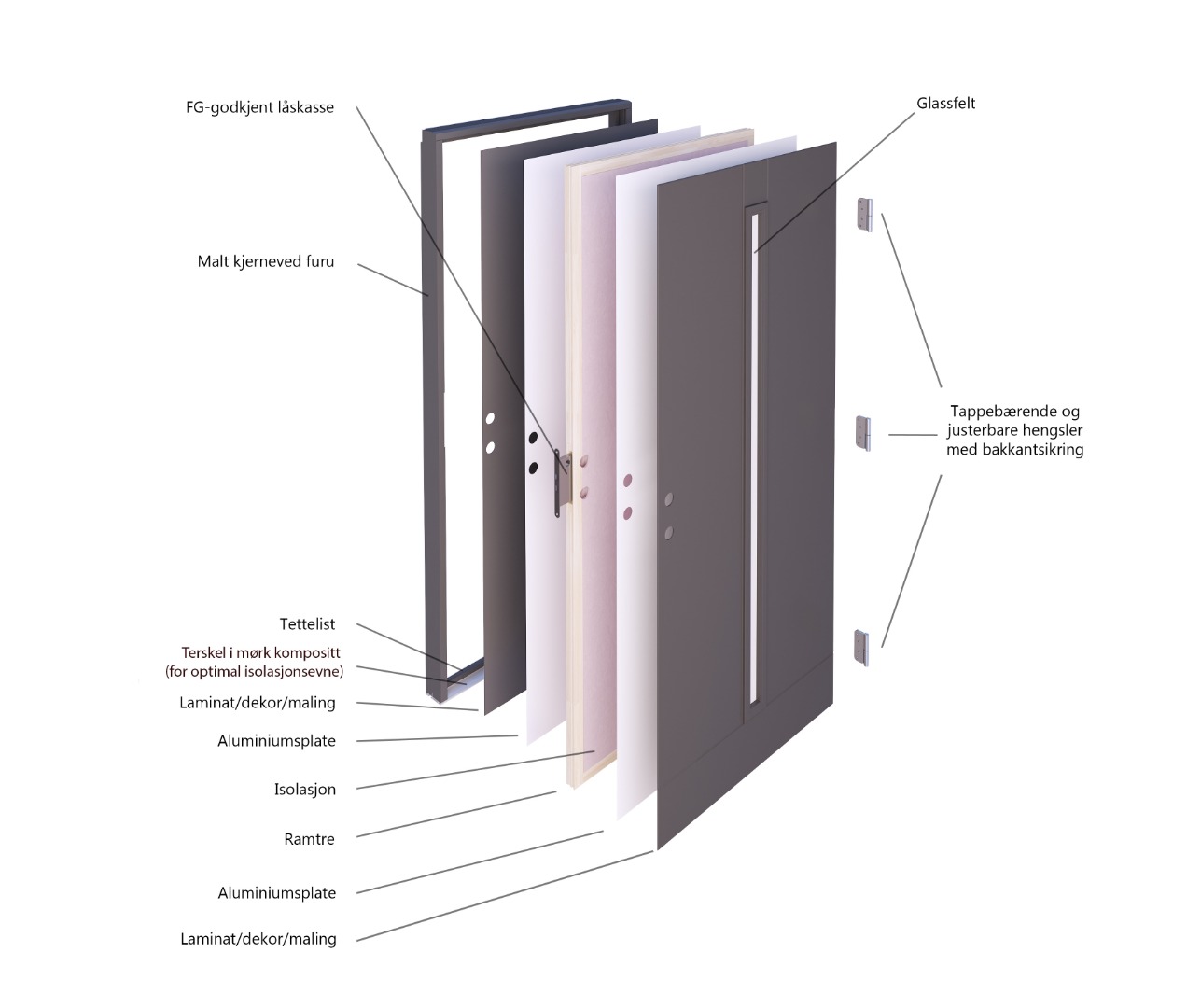 Alle våre standard dørmodeller leveres med FG-godkjent lås.