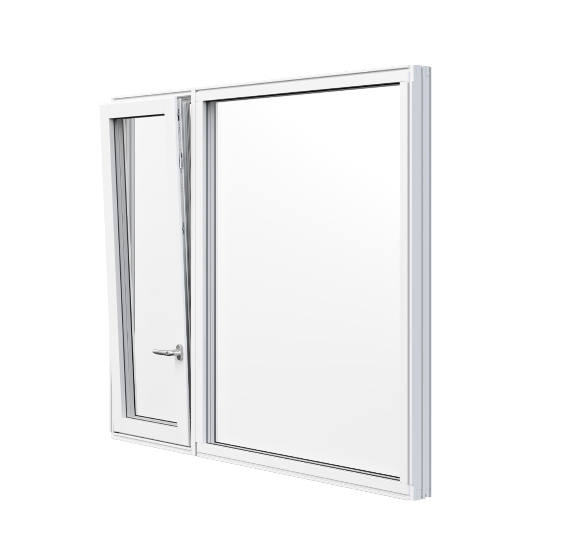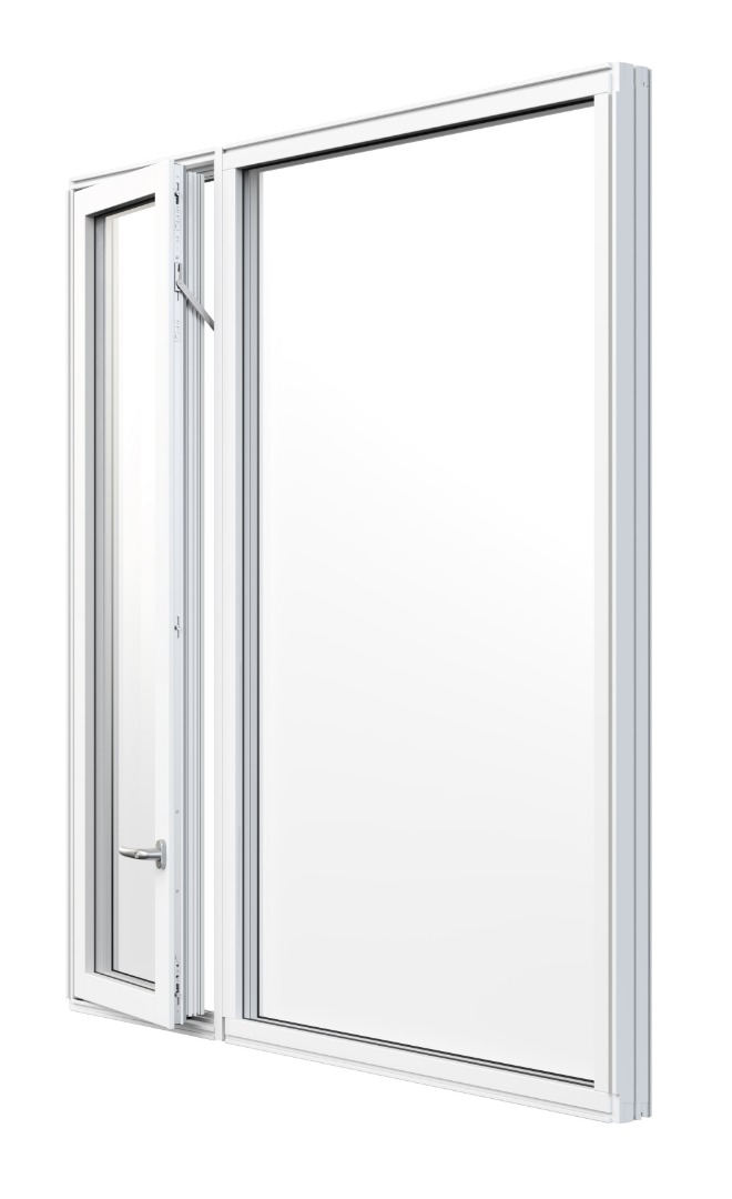 I vindushøyde (ikke betjeningshøyde) til og med 1590mm leveres toveis bunnhengslet og sidehengslet og i vindushøyde over 1590mm leveres sidehengeslet med luftebeslag.